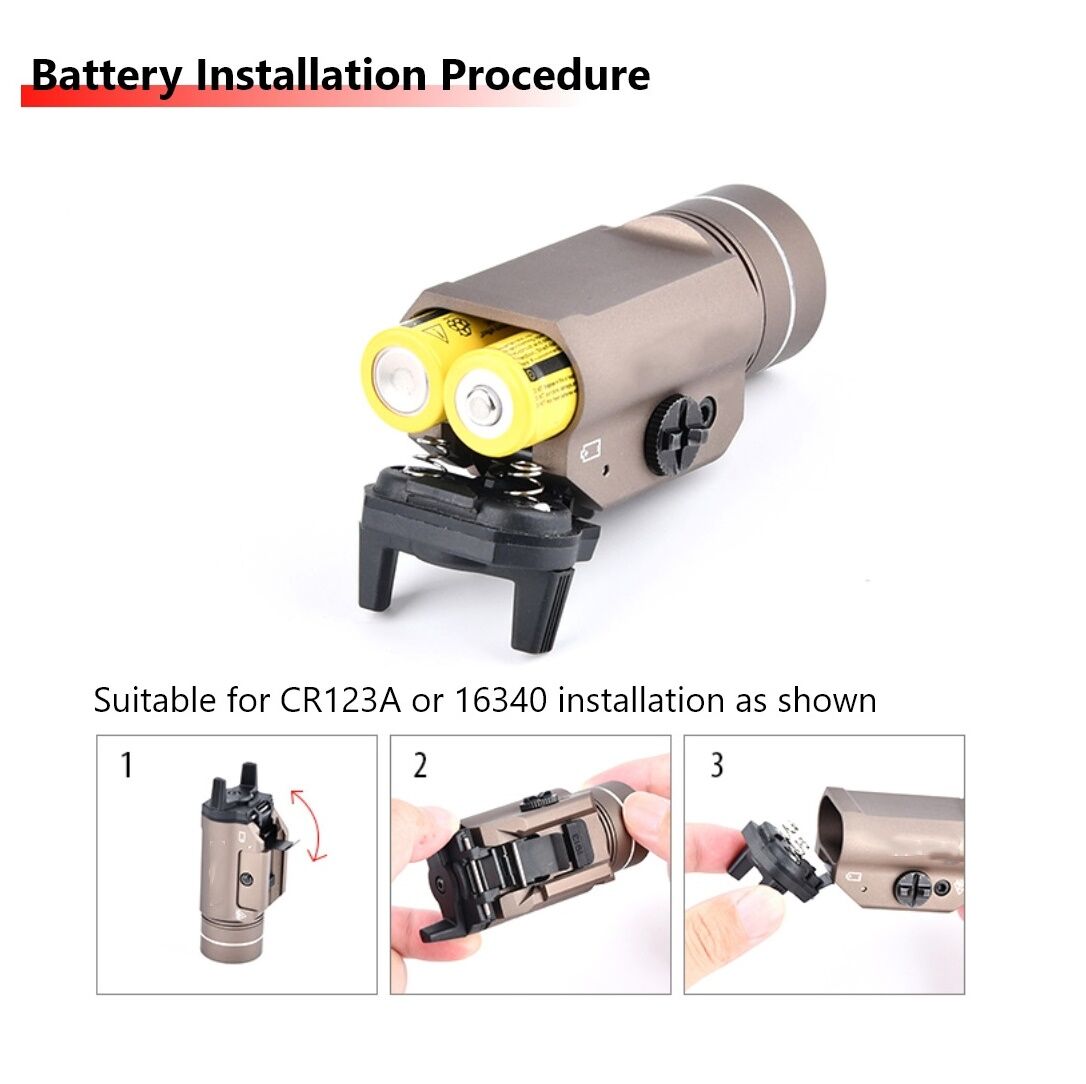 – Nguồn: 2X Pin CR123A hoặc 16340 (tặng kèm).